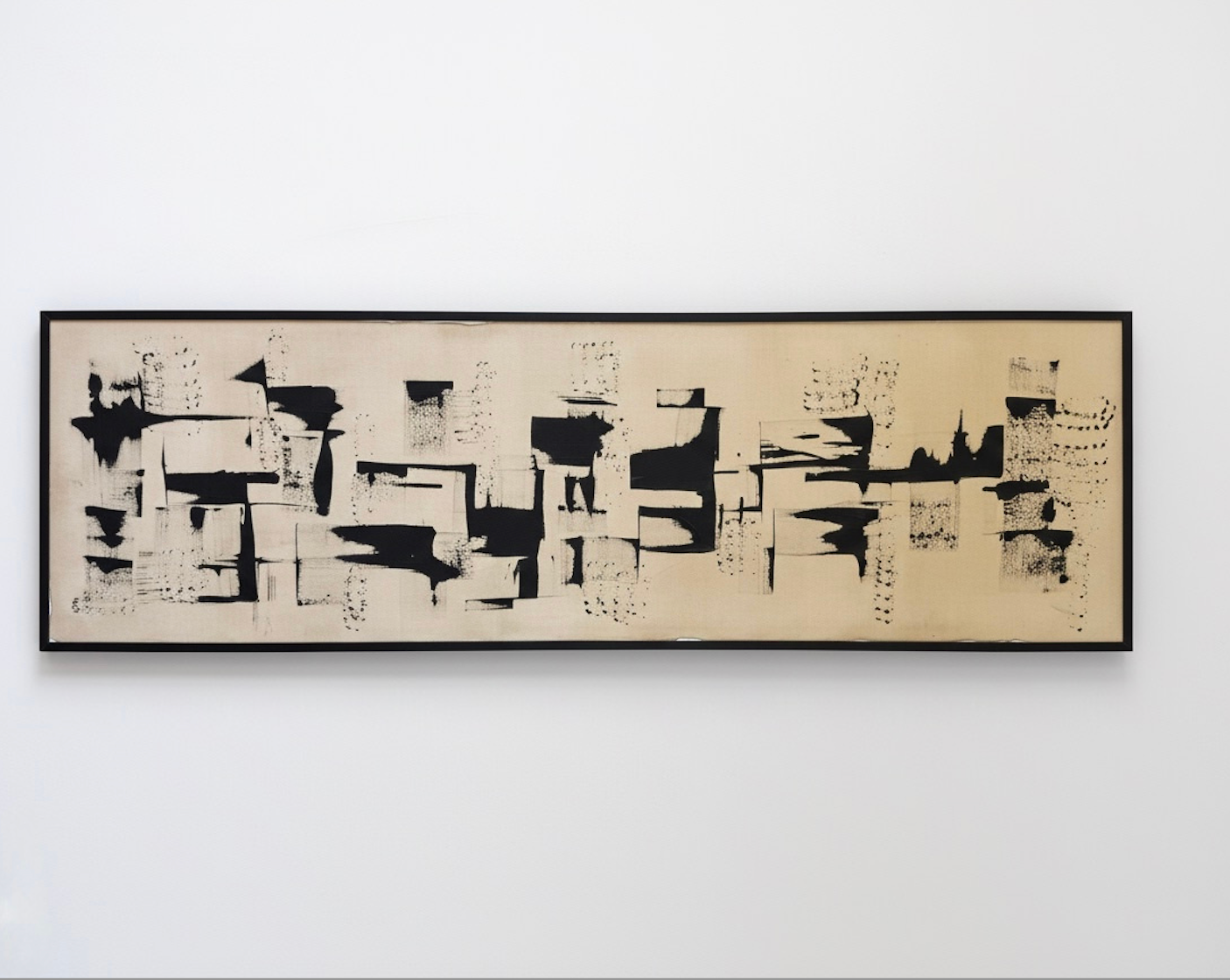 In Invisible Geometry, marks appear and disappear like coded fragments—suggesting forms that feel both architectural and ethereal. Black impressions unfold vertically, rising through the canvas with the quiet logic of an unseen order. Each gesture becomes a trace of presence: subtle, intentional, and deeply human.